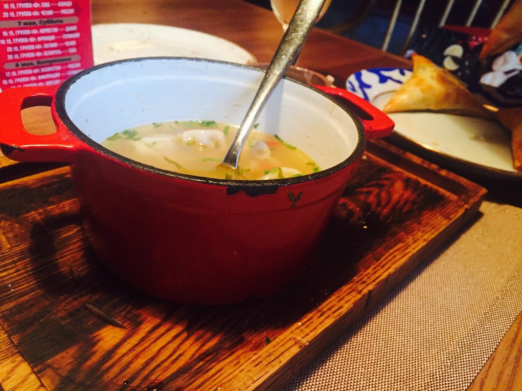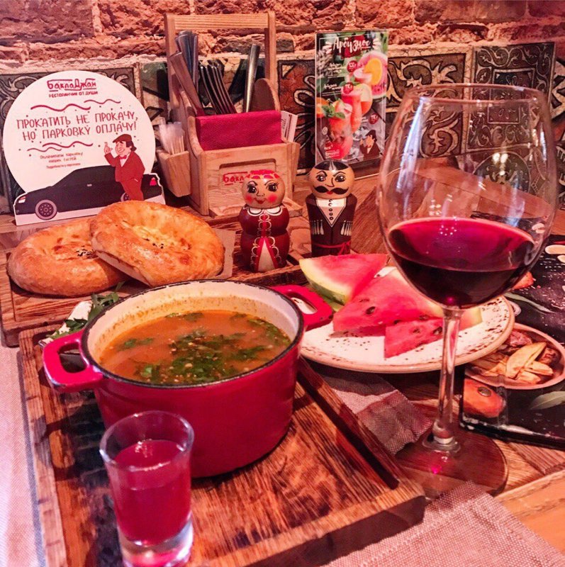 Пройдемся по заказу, ресторан позиционируется как с кавказской кухней, вполне возможно на Кавказе это место быстро обанкротилось от отсутствия клиентов, жидкий харчо,, предположим, повар русский не знает, что это такое, дальше самса из микроволновки, делали в духовке, разогрели потом в микроволновке, снизу мокрая вареная, как бы у персонала на кухне не достаточно умения подогреть в духовке или на сковороде готовый продукт, начинка как для котлеты, опять же, человек, который готовил, точно не понимает специфику этой простой в приготовлении слойки, что она должна быть с рубленым мясом, курдюком, луком, зирой, ну назовите ее тогда слойка с мясом из микроволновки, дальше хачапури по-мегрельски с ПИРОЖКОВЫМ тестом, скорее всего тесто готовое покупное как в дешёвой замороженной продукции из ларька, в замороженной пицце за 100 рублей даже лучше,, кто ел хачапури в нормальном грузинском ресторане, разница очевидна. Дальше шли люля кебаб, сверху румяные, снизу мокрые и вареные, их однозначно готовили в духовке на противне, без следа прокола посередине от шампура или решетки, без запаха угля или мангала, то есть это обычная котлета из духовки с бараньим жиром, но в форме колбаски.