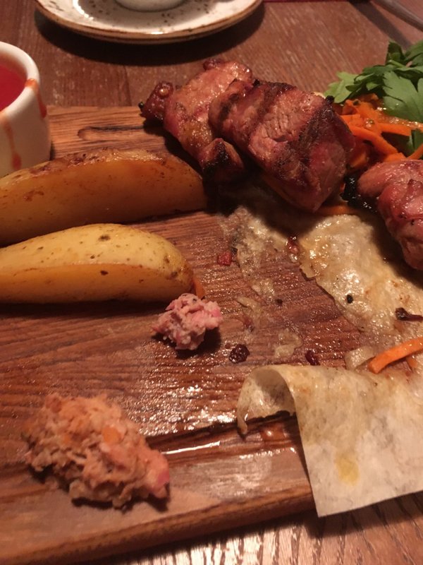 Видно, что ресторан загибается, пытается оптимизировать порции, нанимает низкоквалифицированных поваров, которые не умеют готовить эту кухню и не знают её вкуса,, все это бьёт по владельцам, уверен они сами ощущают это в падении выручки, но справедливо это заслужили, так как жадные неумехи и скряги. Люди в такие места не хотят возвращаться за невкусной едой Единственный плюс была нормальная девушка менеджер, принесла раскраску, поговорила с ребенком, это было нормально, ей скорее всего единственной не наплевать на свою работу, а всем остальным, судя по тому что они подают и врут про наличие мангала , уже давно все равно.