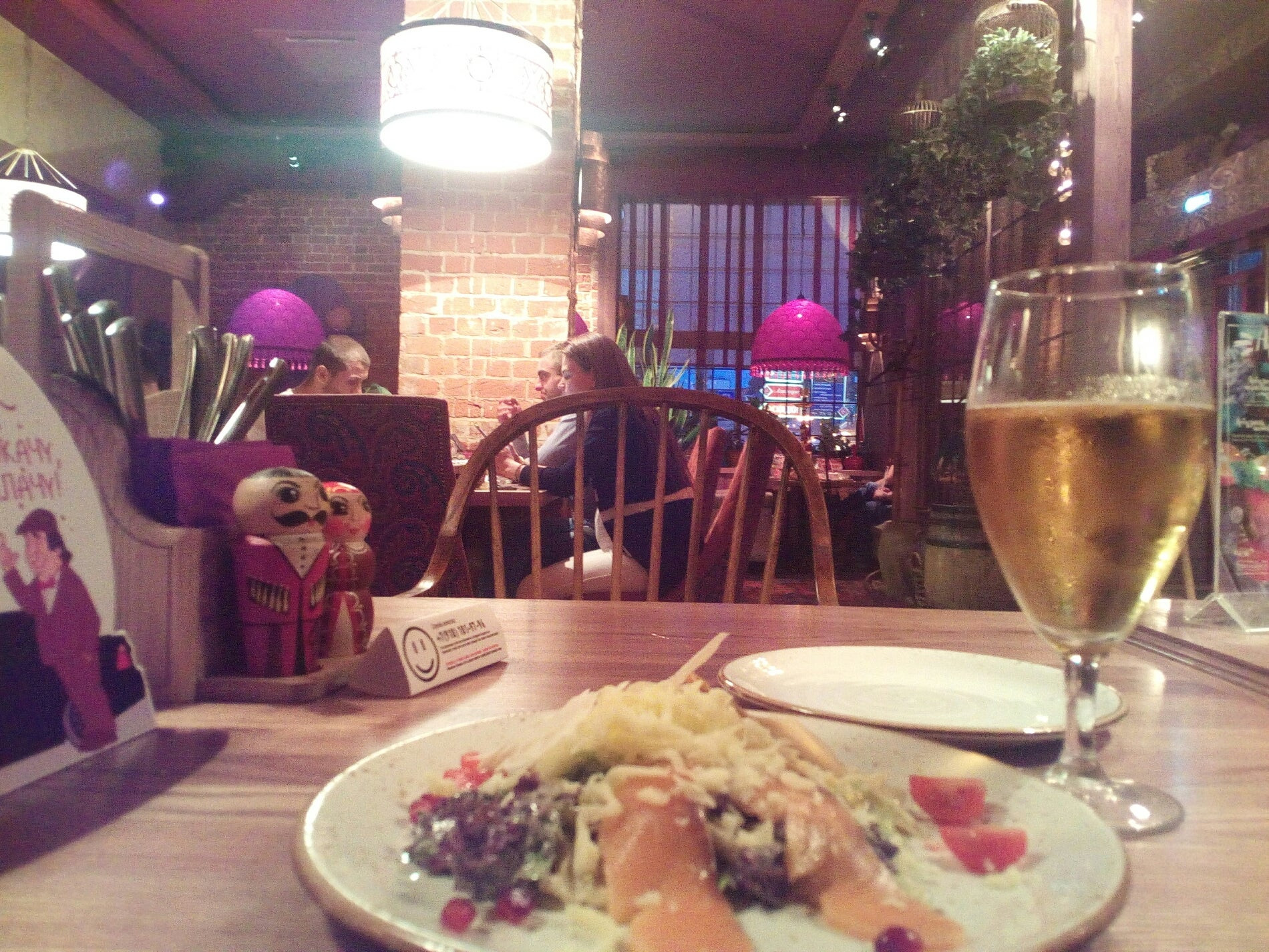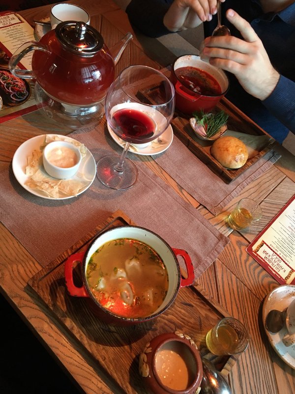 Недостатки: Еда сплошное неуважение к клиенту. Место точно не для людей привыкшим к нормальным вкусным ресторанам. Зашли, потому что в ресторане рядом не было мест, шел дождь, хотелось есть, ребенок был голодным, еда была низкого качества, она была нормальная для еды в столовой или буфете на трассе, но именно ее качество, вкус и способ приготовления для ресторана в центре города, видимо с купленными отзывами как там все прекрасно, а на самом деле просто ппц, вызывает большие вопросы, люди туда ходят, наверное из за интерьера и расположения, за едой туда вряд-ли кто-то вернулся бы